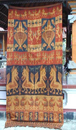 Der Sumba-Ikat ist bei uns Westeuropäern der wohl bekannteste Ikat aus Indonesien. Die plakativen Darstellungen von silisierten